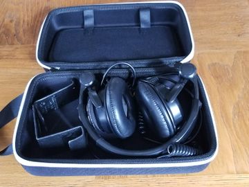 Headphone hard case. Holds all three. Headphones, mic & headphone holder